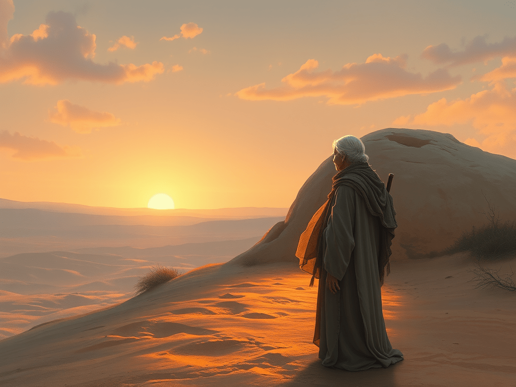He did not approach from the horizon. He was simply there, as if the desert had shaped itself around Him and then remembered what it was meant to hold.